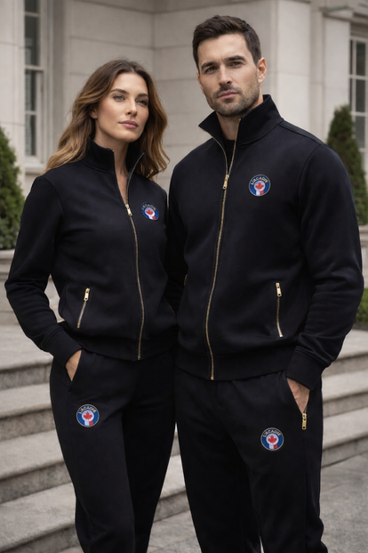 Une expression du prestige canadien et de la puissance raffinée. Le survêtement L’ACADIE Élite Canadienne allie un savoir-faire luxueux à un design patrimonial audacieux, mettant en valeur le motif signature L’ACADIE, des finitions précises et une allure d’élite. Conçu pour ceux qui dirigent avec assurance et portent l’excellence naturellement.