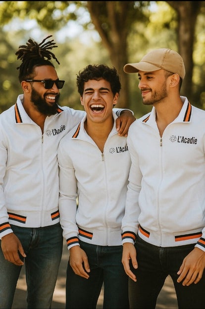 L’Acadie Zenith – Ascend to the pinnacle of style with this impeccably crafted jacket. Its pure white canvas, accentuated with bold black stripes and the iconic L’Acadie logo, exudes unparalleled sophistication. Every line, every stitch reflects precision, elegance, and modern luxury—designed for those who set the standard rather than follow it. L’Acadie Zenith is more than a jacket; it is a statement of ambition, prestige, and timeless refinement.