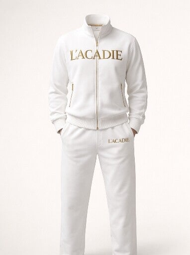 Step into unmatched sophistication with the L’ACADIE Élite Masculin tracksuit. Crafted for the modern man who values elegance, comfort, and style, this premium white tracksuit with gold accents embodies Parisian luxury in every detail.
